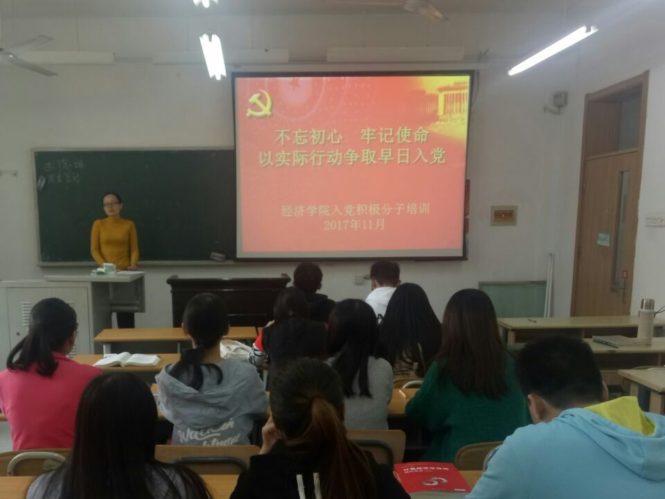 (通讯员:杨晓� 常程)11�2�,经济学院分党校分别在舜耕校区和圣井校区召开本学期入党积极分子培训大会。学生党支部书记主持此次培训,新一批入党积极分子参加会议�