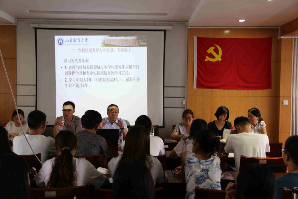 农村区域发展教研室的各位老师根据自己教学和科研的体会,向同学们介绍了自己对该专业的认识,并结合自己的求学经历与同学们分享了学习和考研的经验,激励同学们奋发向上,在学习的道路上不断迈向新台阶。最后各位老师还就同学们提出的问题进行了一一解答�