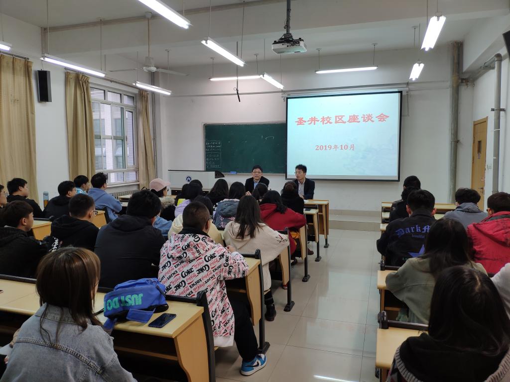 10�16日下午,经济学院党委书记姜伟到圣井校区召开调研座谈会,圣井校区2017级�2018级学生代表参加,会议�2017级辅导员朱海林主持�