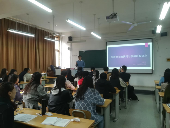 刘建旭老师以“学术论文的撰写与投稿经验分享”为主题展开学术经验分享。关于学术论文的撰写,刘老师以三篇优秀的国内外论文为例,对学术论文各个部分的写作做了细致地方法讲解;关于投稿经验,刘老师通过讲述自己的投稿经历,指出提前熟悉和了解目标期刊对于成功投稿很重要�