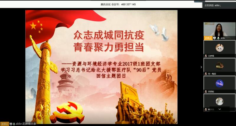 (通讯员:徐清� 常群)为深入学习贯彻习近平总书记给北京大学援鄂医疗队�90后”党员回信精神,广泛发动团员青年向在疫情防控一线担当奉献的青年学习,按照校团委有关要求,结合学院实际,3�18日至23日,经济学院各团支部依托网络平台开展学习习总书记给北京大学援鄂医疗队�90后”党员回信线上主题团日活动�