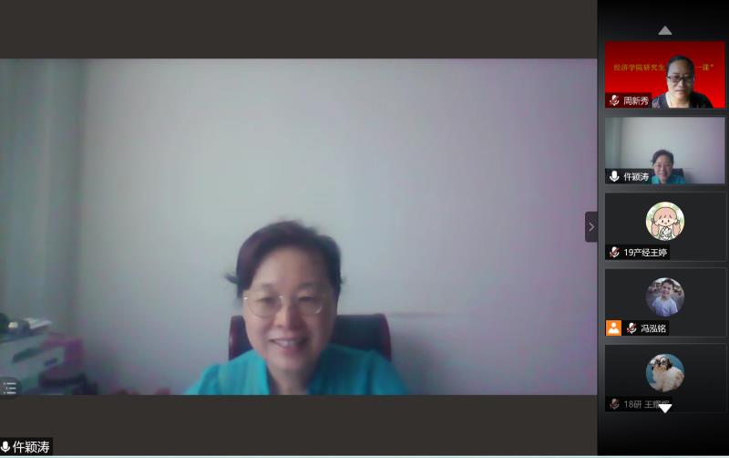 2020�8�31日上�10点,以“加强疫情防控,强化制度认同”为主题的经济学院研究生“开学第一课”在线上顺利举行。经济学院党委副书记仵颖涛和学工办主任周新秀分别作了题为“深刻认识疫情防控形势的复杂性与长期性,慎终如始毫不放松抓好常态化疫情防控”和“遵守校规校纪,做好疫情防控工作”的讲话�2018级和2019级全体研究生参与会议,会议由周新秀老师主持�