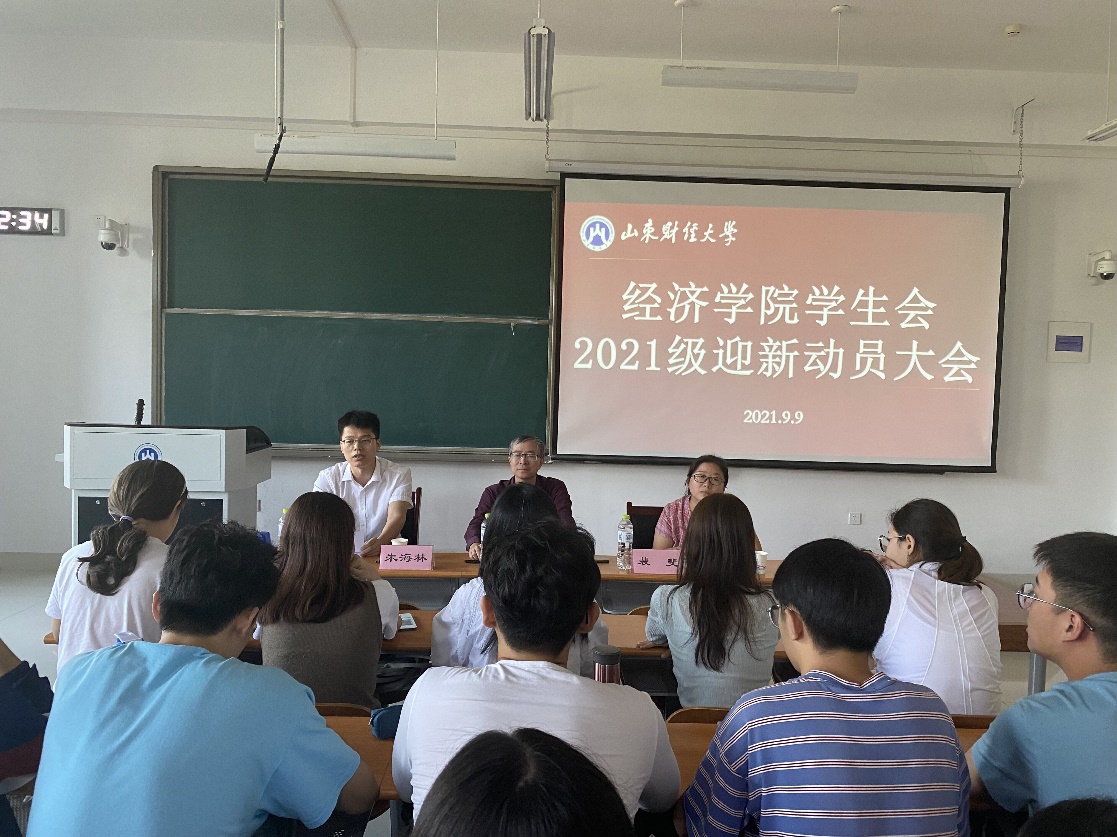 (通讯员:叶雨� 刘毓菲)9�9日中午,经济学院于圣井校�7号教学楼召开经济学院2021级迎新动员大会。经济学院党委副书记高峰、学工办主任裴斐、新生辅导员朱海林出席会议。会议由裴斐主持,学院学生会全体迎新工作人员到场参加�