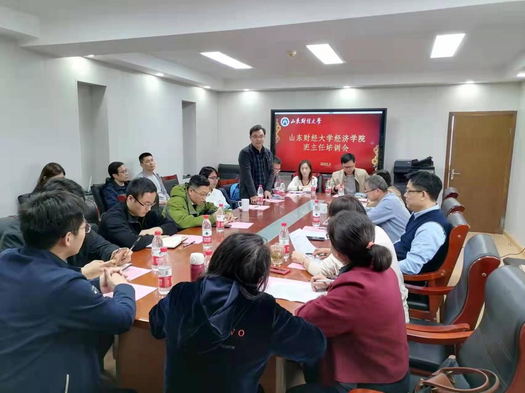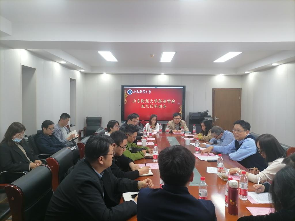3�10日,经济学院于舜耕校区办公楼1208召开班主任培训会,学院党委书记姜伟、学院党委副书记高峰、李冰封及全体辅导员和班主任老师参加了会议,会议由学工办主任裴斐主持�