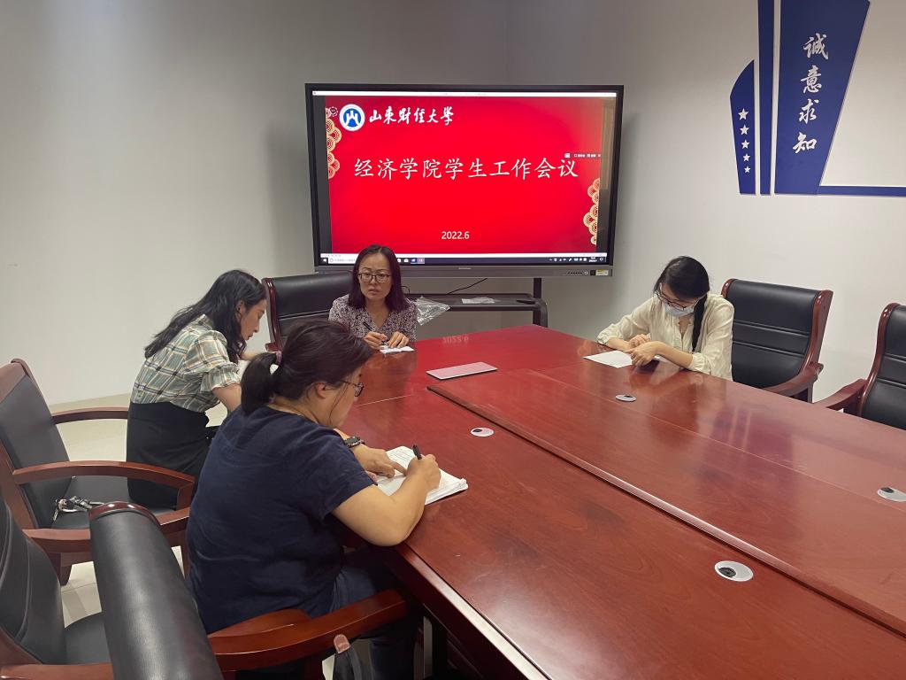 (李冰封 裴斐�6�1日上午,经济学院在圣井校区会议室召开学生管理工作会议,学院党委副书记李冰封、陈静及全体辅导员参加会议,会议由党委副书记李冰封主持�