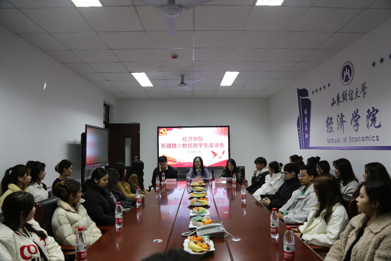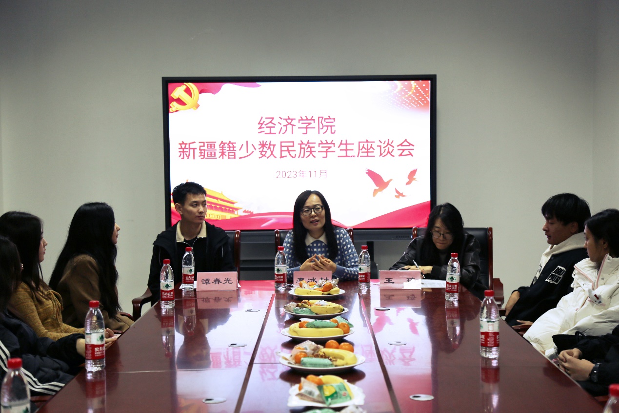 (通讯员:燕丽� 何瑞佳)为进一步引导经济学院师生铸牢中华民族共同体意识,自觉维护民族团结,加强与少数民族学生的沟通与交流,全面了解经济学院少数民族学生的学习与生活情况,不断提升少数民族学生教育管理水平�11�20日晚,经济学院于圣井校区7213会议室举办经济学�2023年新疆籍少数民族学生座谈会。经济学院党委副书记李冰封、院党委专职组织员王琦、辅导员谭春光出席会议,经济学院2022级�2023级新疆籍少数民族学生到场参加。会议由李冰封主持�